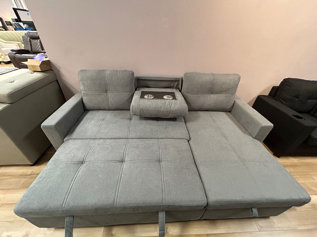 Caesar Reversible Sectional Sofa Bed with Storage & Cup Holders