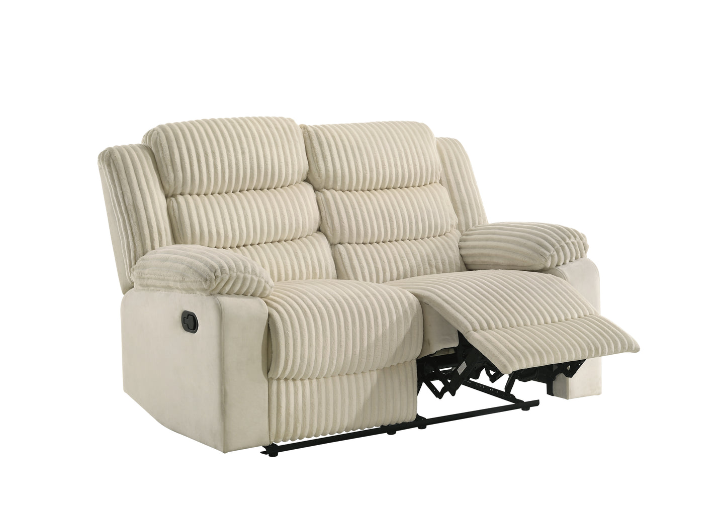 Indulge in ultimate relaxation with the L3665 Comfort Sofa in Cream, a perfect combination of elegance, comfort, and functionality. Upholstered in soft velvet corduroy fabric, this reclining sofa offers a rich texture and a warm, inviting cream tone that brightens and enhances any living space.